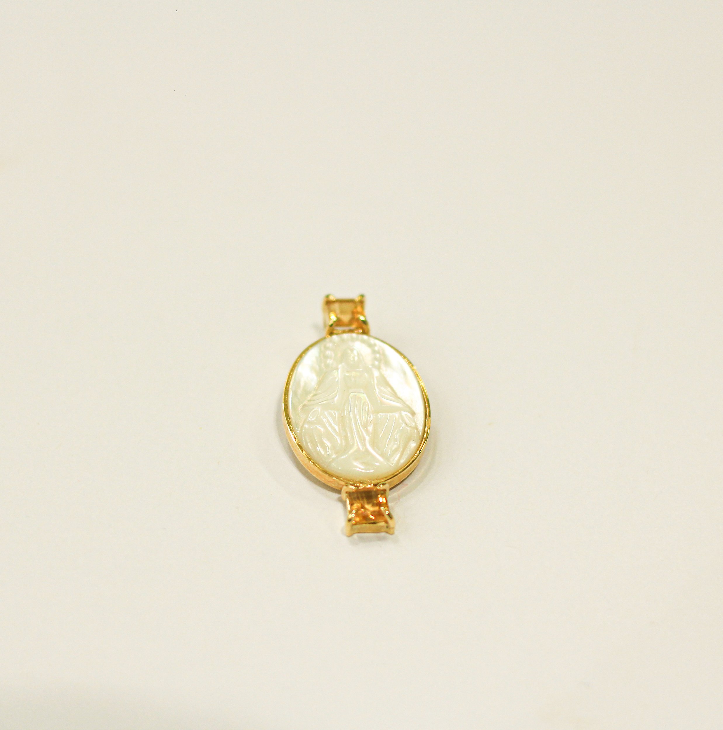 PINGENTE NOSSA SENHORA DAS GRAÇAS EM MADRE PÉROLA E OURO 18K750.